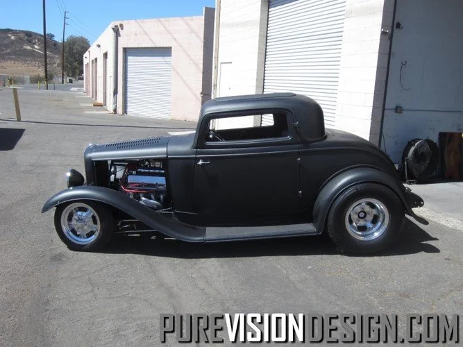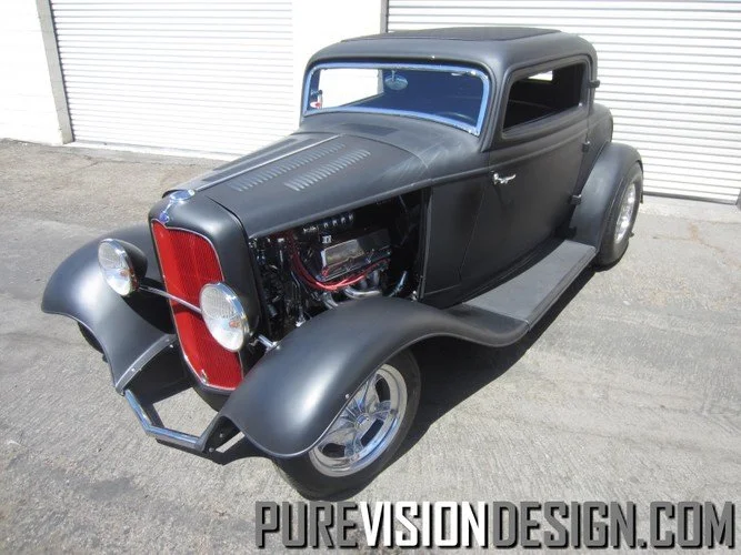 This beauty is one of the reasons that Pure Vision employee Kelly Cox got into hot rods as a youngster. This '32 has been in the family since Kelly was a child. After having been off the road for a number of years for a refreshing, Kelly brought the car into our shop where he dug in and reworked many of the old modifications to bring them up to a modern level of quality. Although not finished in these pictures, this is the point that Kelly brought the car to before handing it back over to his father and friends to complete.