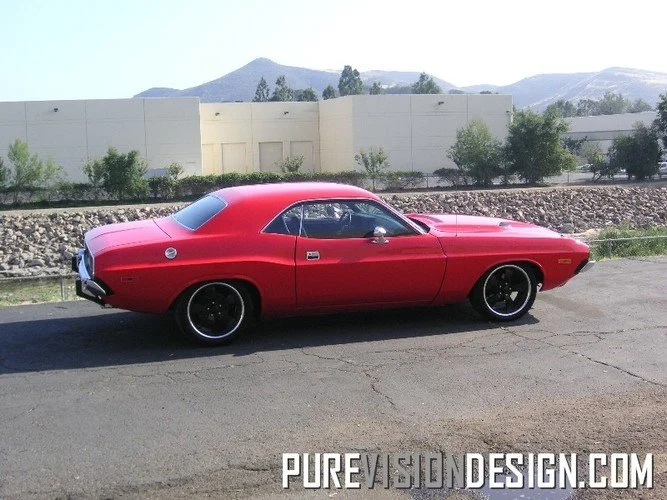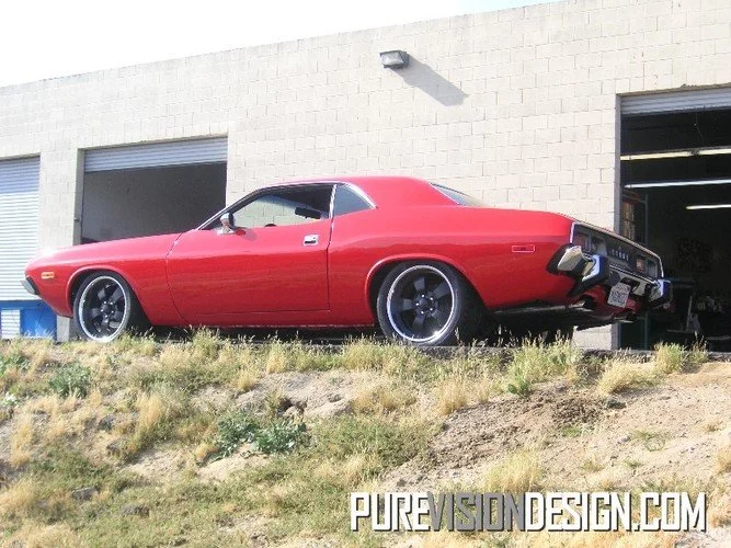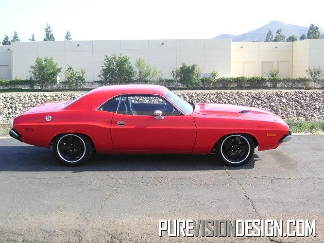 This 1973 Challenger is ready to rumble! After repairing and replacing much of the rusty original front structure, we've cleaned up the engine bay and installed a Ray Barton built 472 cid HEMI, 727 transmission and complete 3" TTI exhaust system! While we were at it, we rebuilt the front suspension, installed disc brakes, and upgraded to 19"rims from Bonspeed. Now that's a sweet driver!