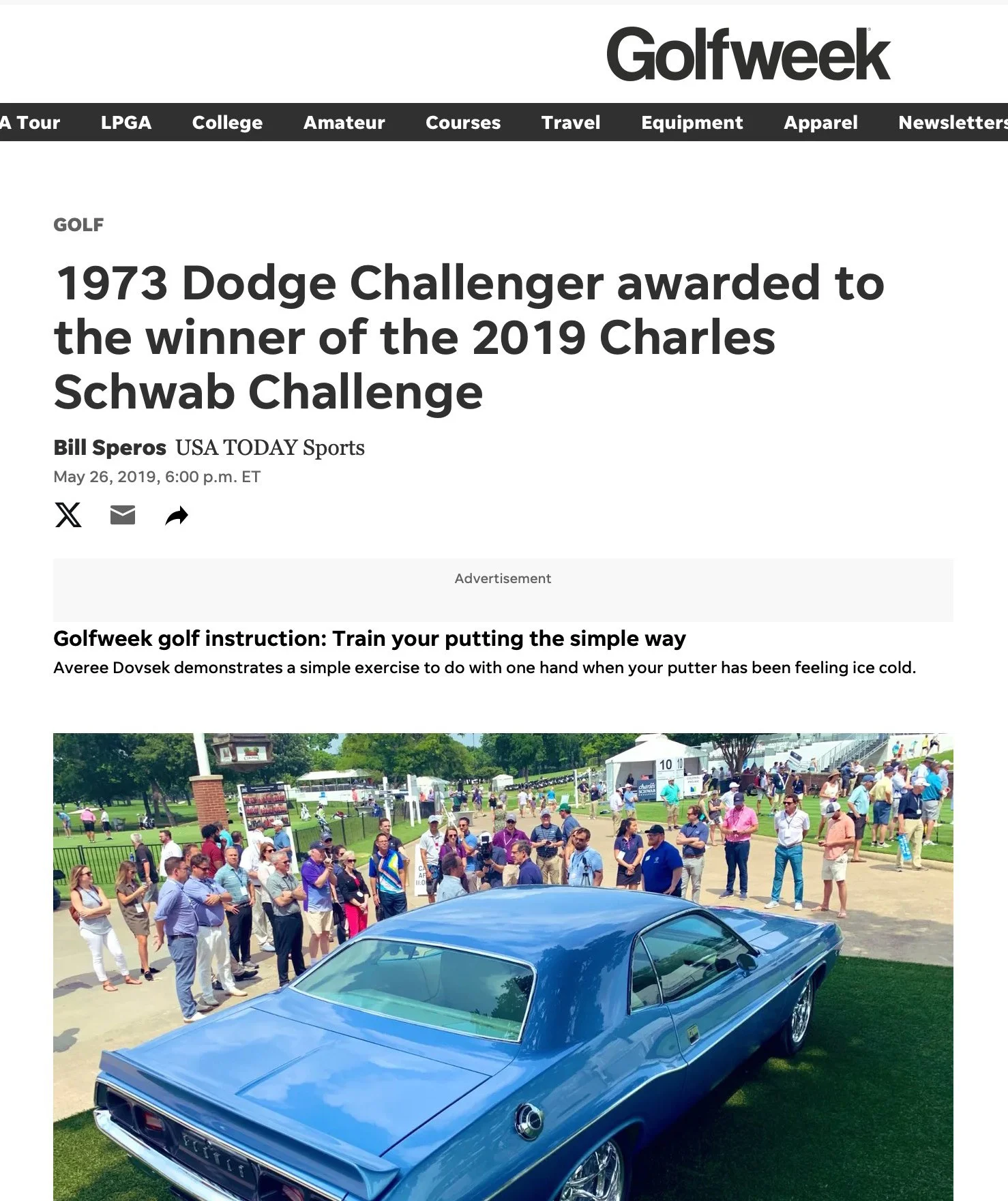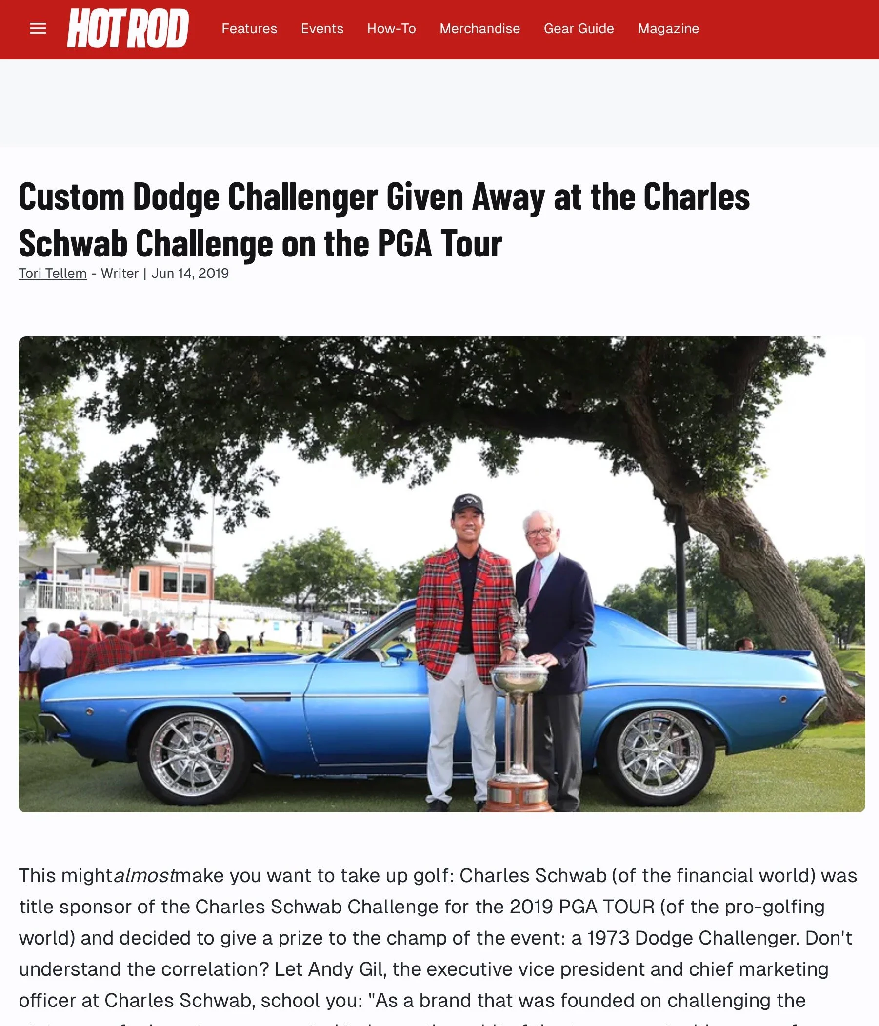 The winner of the 2019 Charles Schwab Challenge will receive a beautiful, fully restored, resto-mod Schwab Challenger. Yes you read that correctly. Not a Dodge Challenger because this car won’t be stock. It will be custom built and modified for Schwab by the legendary car builders at Pure Vision!