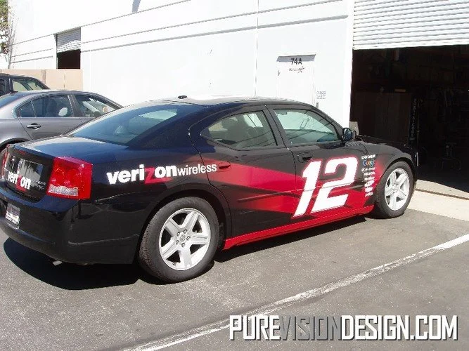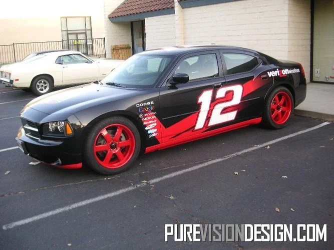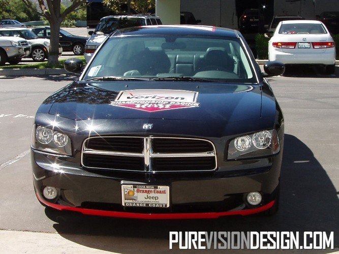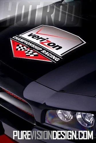 Once again Hot Rod Magazine came to Pure Vision for a cool car built on the fly! This time it’s a 2010 Charger that will be a sweepstakes car from Verizon Wireless. The car needed to simulate the Verizon Wireless NASCAR race car. So a killer vinyl wrap from Pit Image was in order. Next came the 255/45ZR20 and the 295/40ZR20 Continental Tires mounted on custom Intense 6 rims from Bonspeed. A Hotchkis suspension was employed to get it on the ground. The final touches were a couple of cool front & rear spoilers from Danko Reproductions and a mesh grille from Mopar Performance to finish it off right!